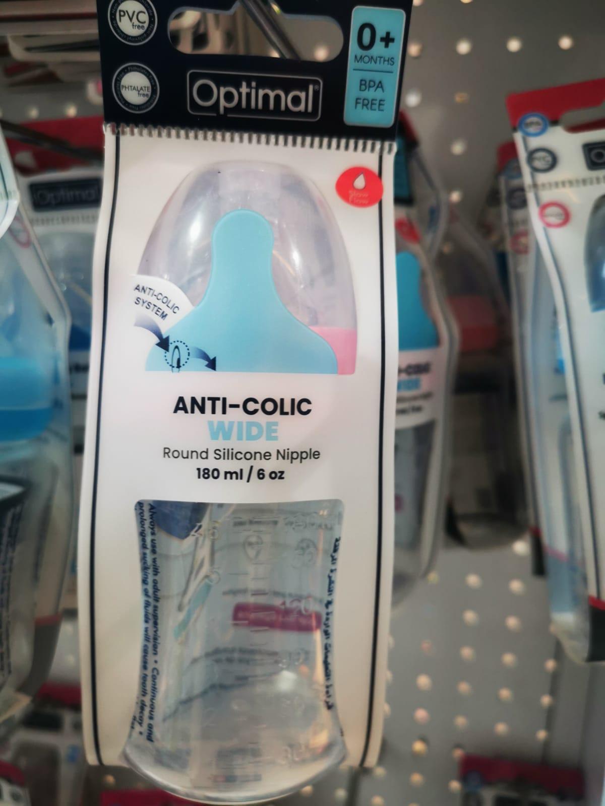 0+ MONTHS BPA FREE Optimal ANTI-COLIC SYSTEM ANTI-COLIC WIDE Round Silicone Nipple 180 ml/ 6 oz