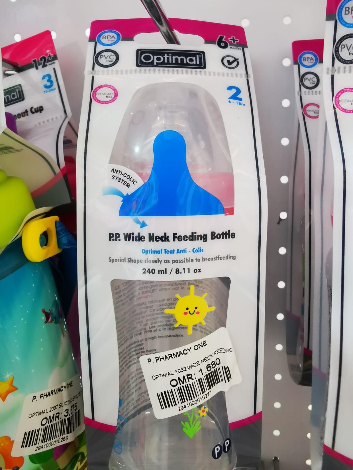 Optimal 2 6-18m ANTICOLIC SYSTE P.P. Wide Neck Feeding Bottle Optimal Teat Anti - Colic Special Shape closely as possible to breastfeeding 240 ml/ 8.11 oz