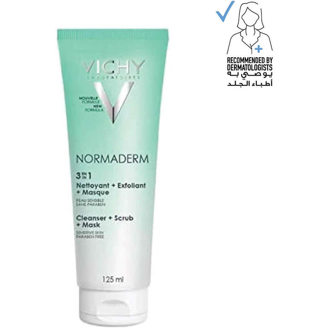Vichy Normaderm 3 in 1 Cleanser, Scrub & Mask for Oily/Acne Skin with salicylic & glycolic acid 125ml